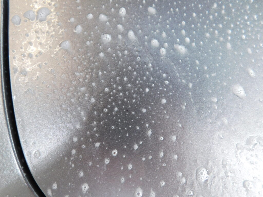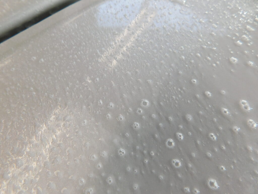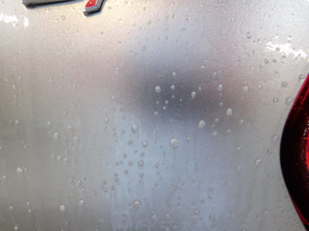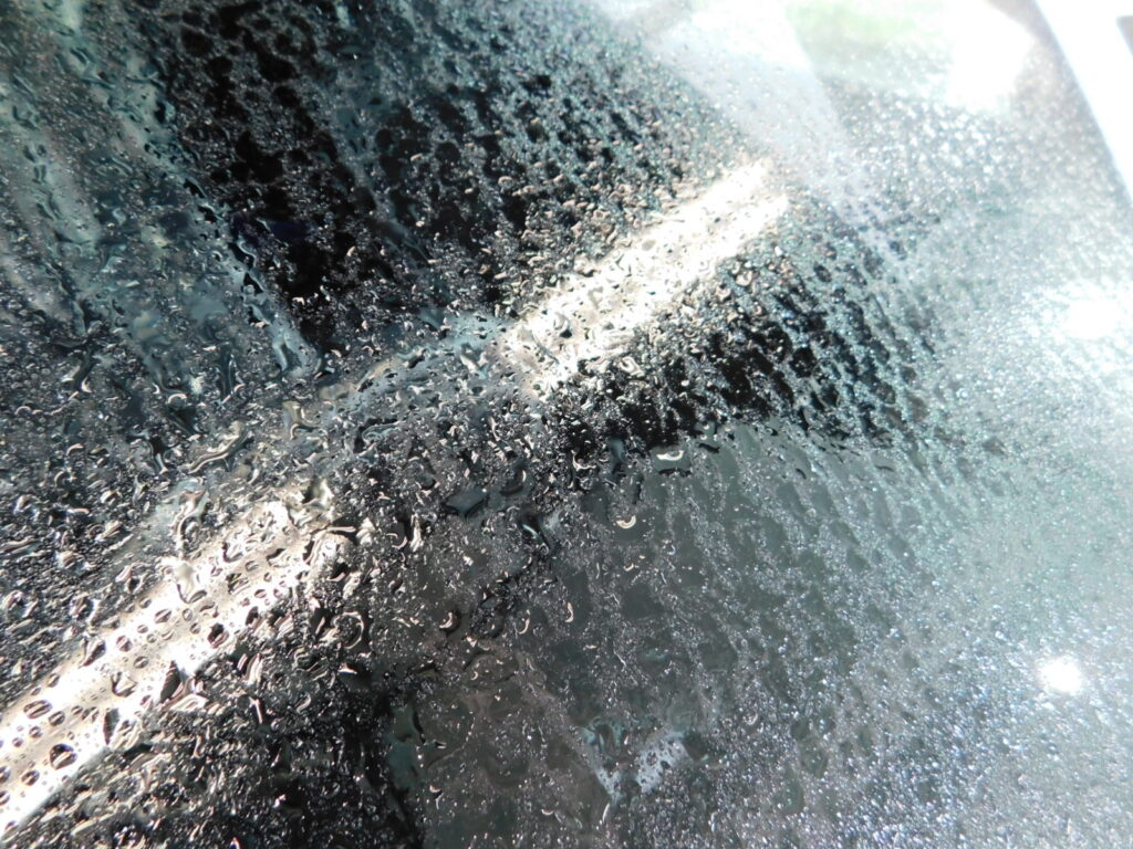 塗装面に付いているシミやガラスのシミを見てみると日中の駐車場の周りの環境による
