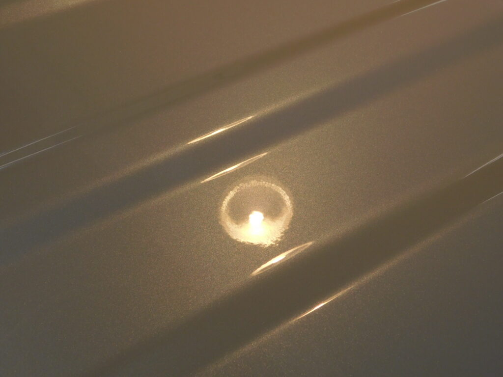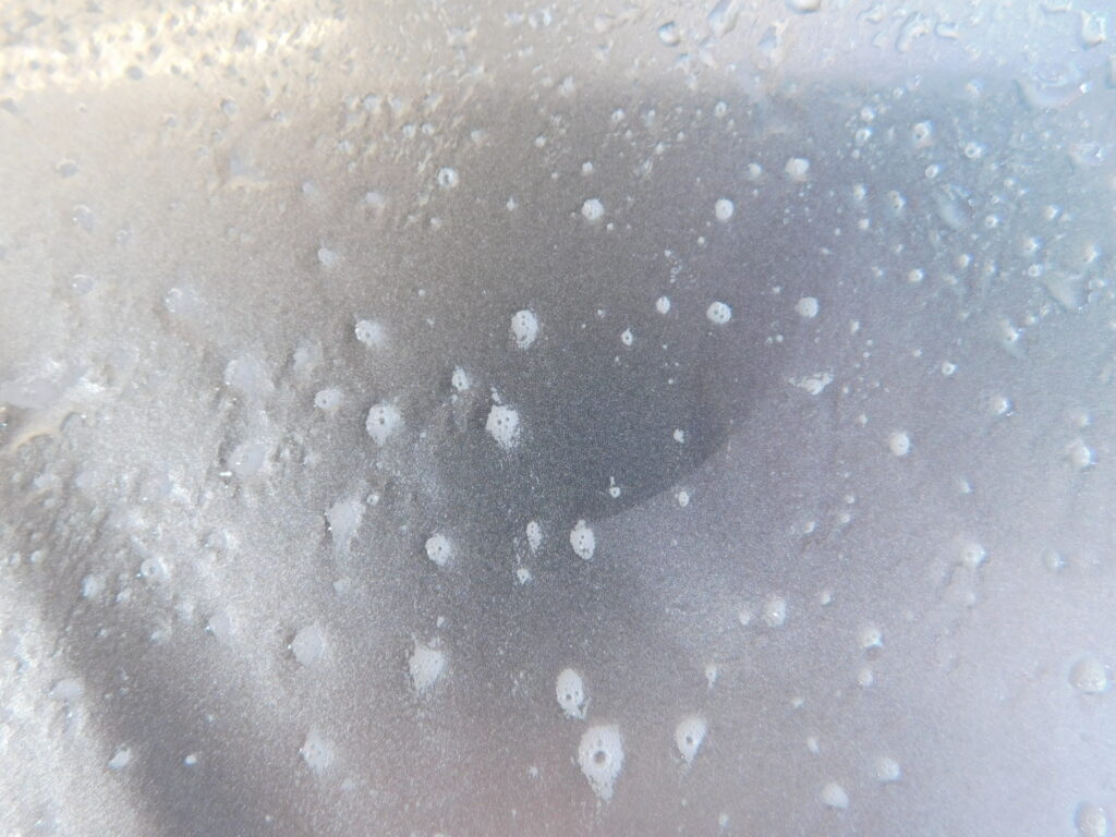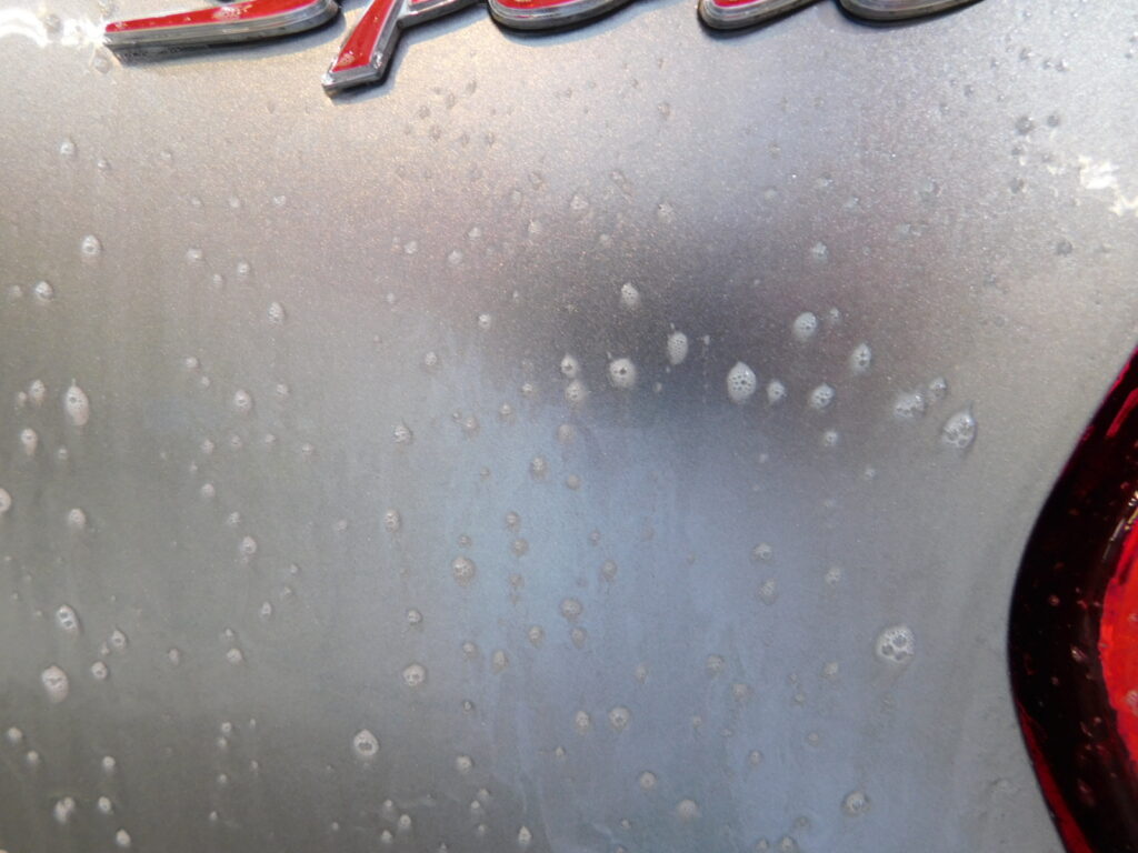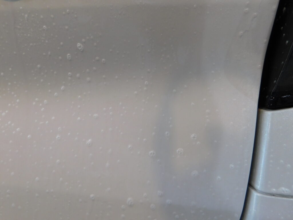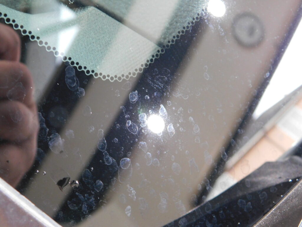 塗装面に付いているシミやガラスのシミを見てみると日中の駐車場の周りの環境による