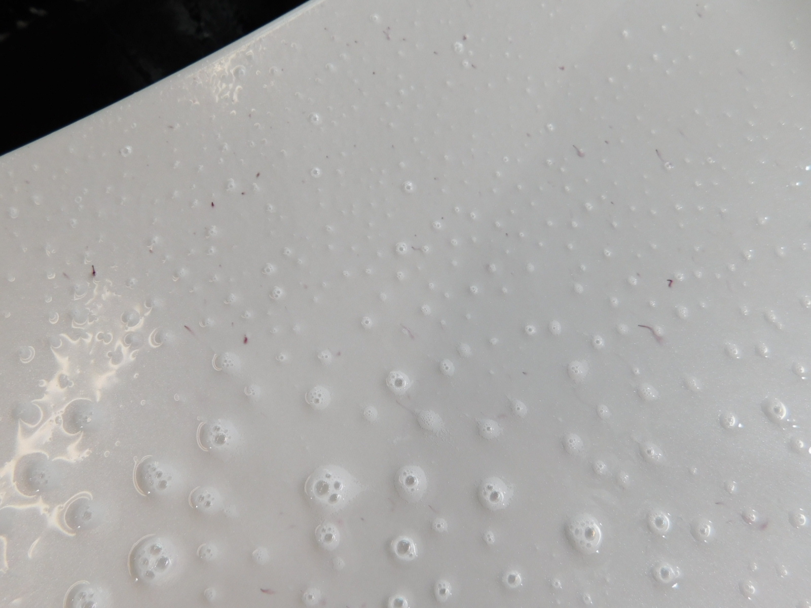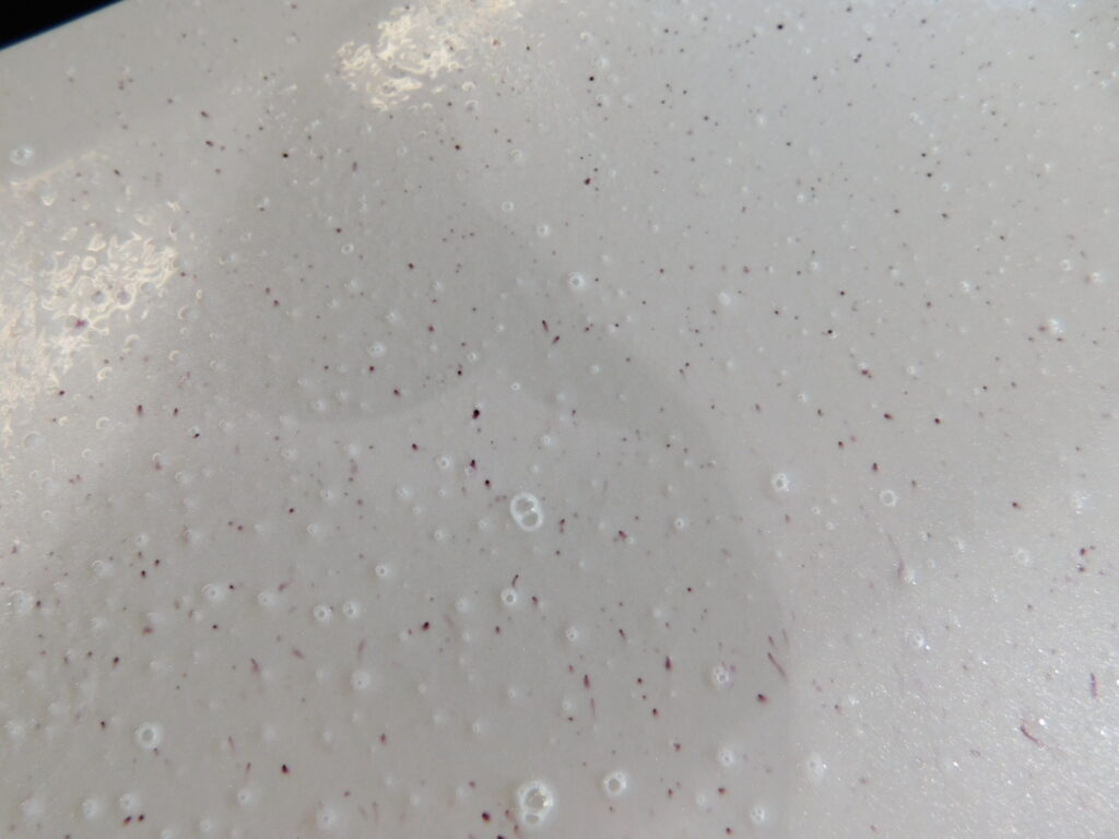 専用のクリーナーを吹き掛けますと鉄粉が紫色に反応しますが・・・