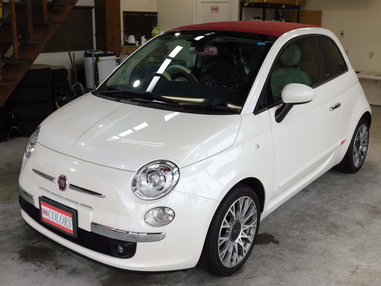 ではコーティング施工から1年経過しましたフィアット500Cのメンテナンスの様子を