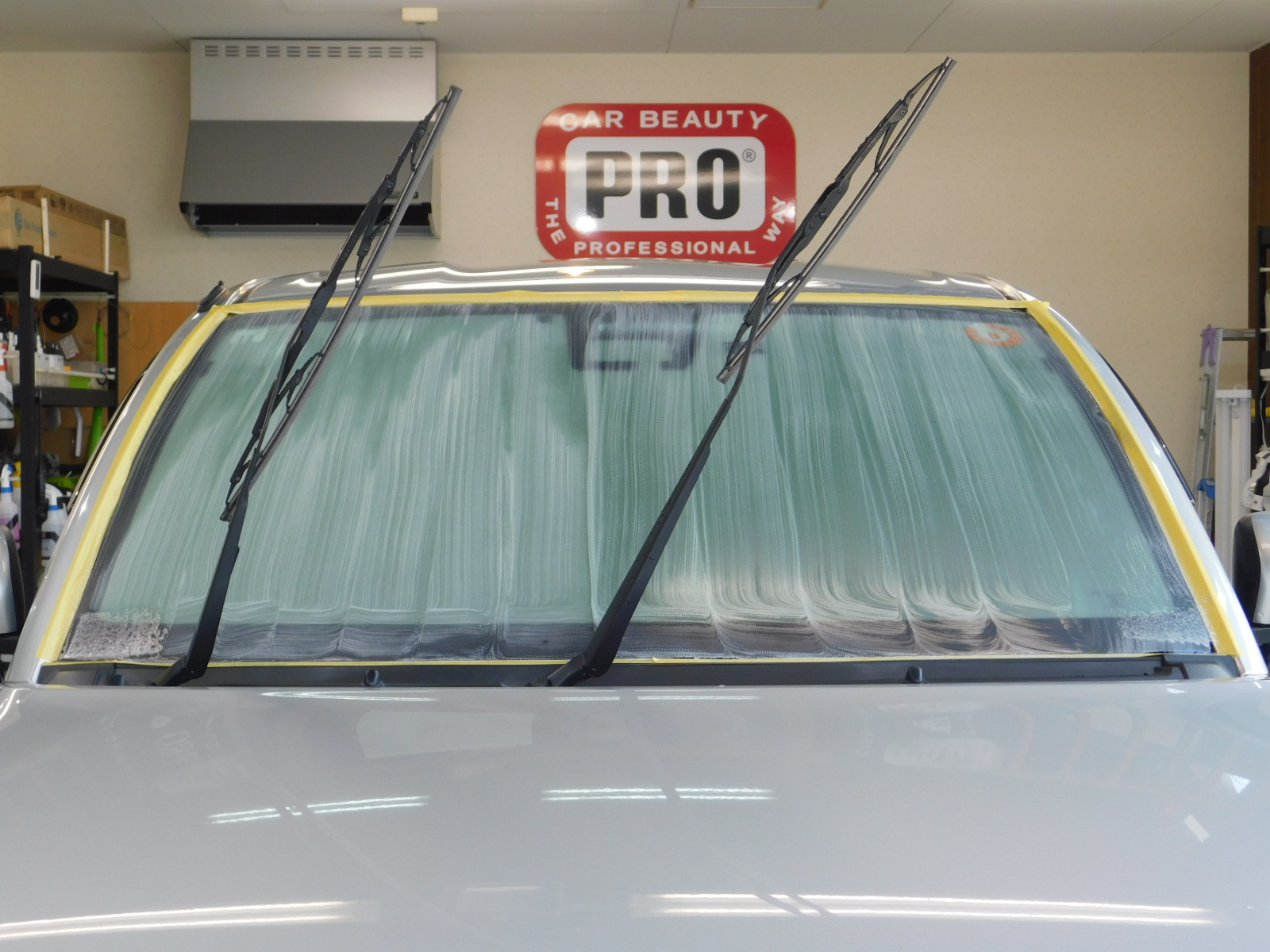 古いコーティング被膜を除去してから再度ウインドウ専用コーティング剤PGS-33で